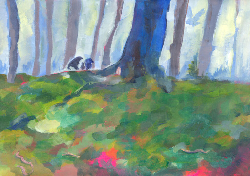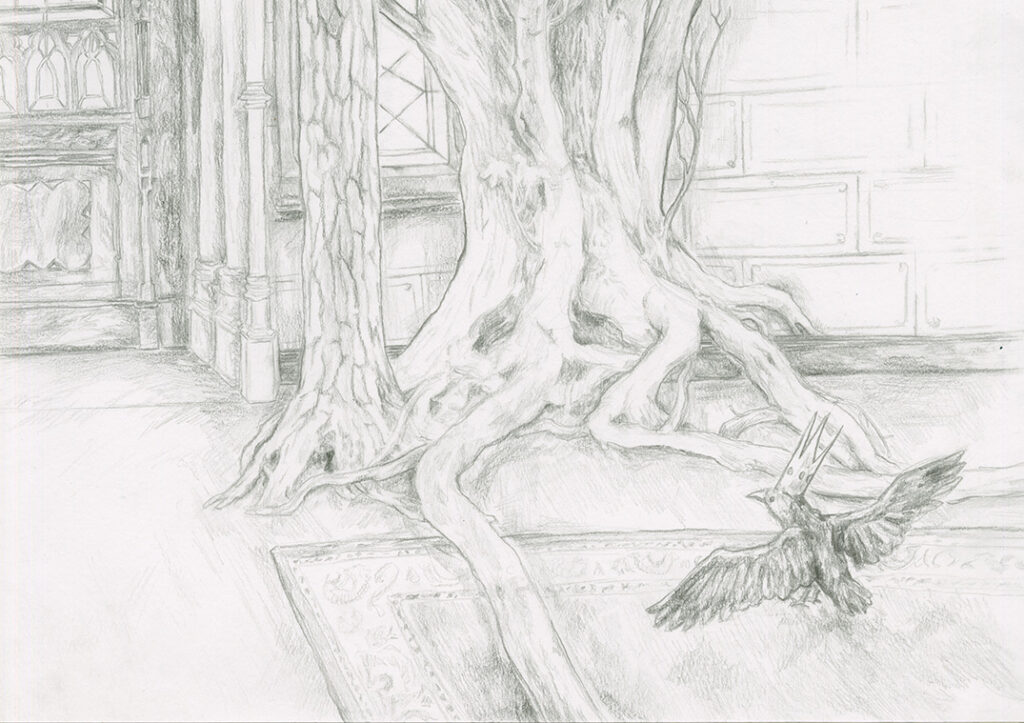De drie gezichten die onder een boom leven